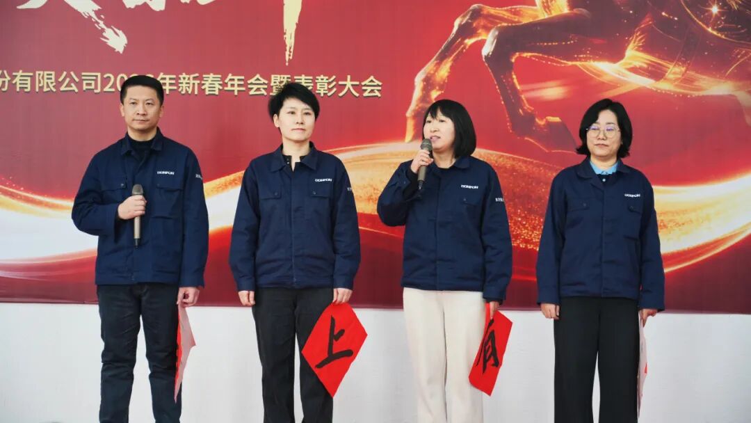 随后,丁总、张总、孟总、贾总带领分管团队依次登台,为全体员工送上新春祝福。高管团队在新春祝福中,结合各自职能领域,全面总结了过去一年在战略推进、技术研发、运营优化、生产管理等方面的显著成效。他们一致肯定了团队协作与创新实践对提升企业核心竞争力的关键作用。展望未来,高管们强调将持续强化市场开拓、优化组织效能,持续践行“既异想天开,又实事求是,变不可能为可能”的企业精神,立足新起点,凝心聚力,在变革中把握机遇,于实干中再创佳绩。